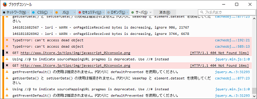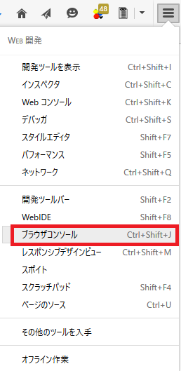 FireFoxのブラウザコンソールを開くとJavaScriptのエラーが表示されるので便利である。