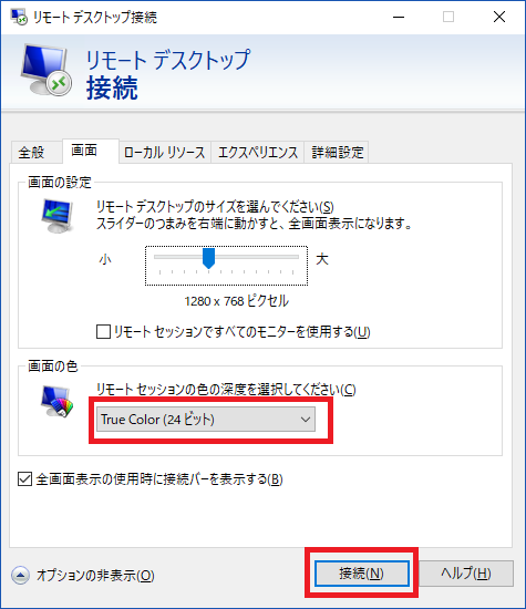同じPCからでも画面の解像度や色のbit数を変えると前のセッションに接続できない。