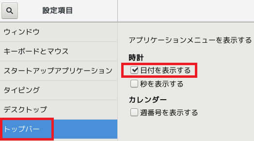 アプリケーション>ユーティリティ>TWeak Tool>トップバー>日付を表示する。